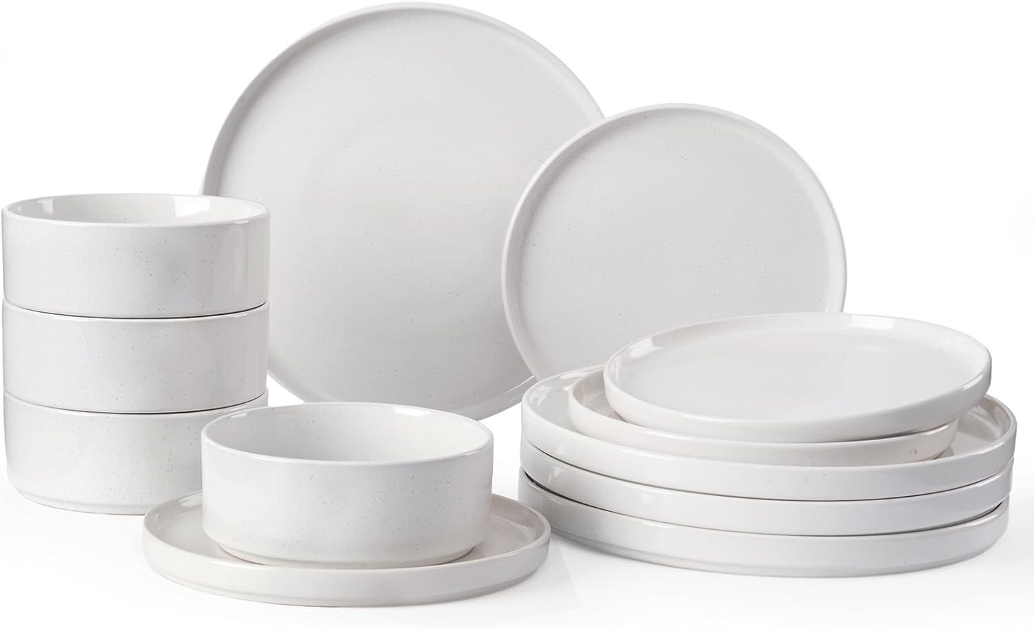 Nebula Plates and Bowls Set, 12PC Speckled Stoneware Plate Set, Scratch Resistant Dinnerware Sets, Dishwasher & Microwave Safe, Dining Plates and Bowls Sets, White with Speckled