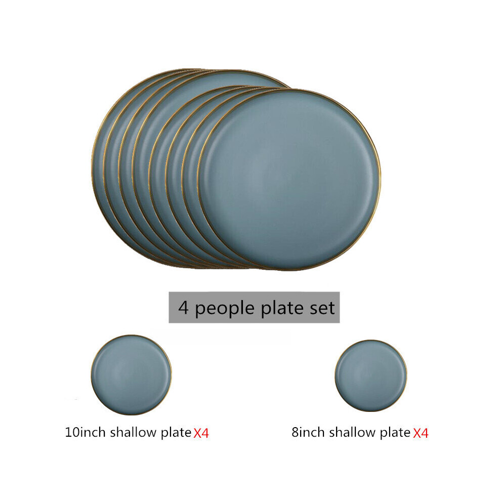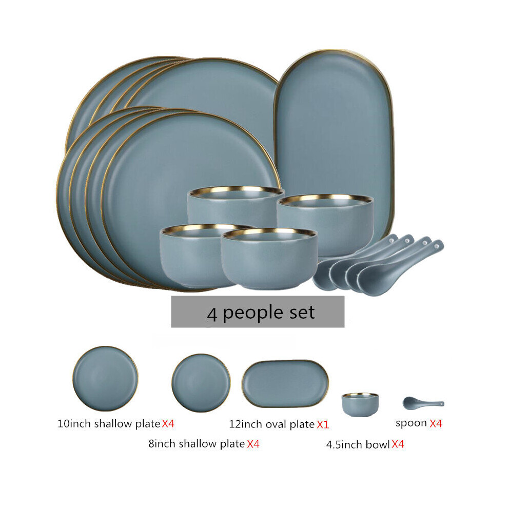 (a-4 people plate set) Matte Gilt Rim Ceramic Tableware Set with Spoon Cereals Bowl Dessert Plate Steak Plate for Dinner Gift Plates and Bowls Set