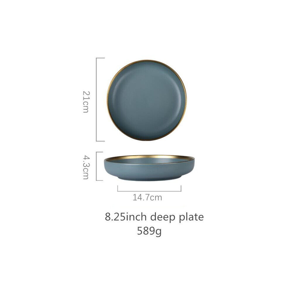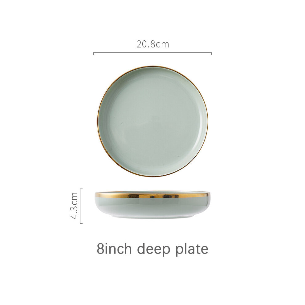 (a-8inch deep plate) Ceramic Tableware Set Dishes Dinner Plates Steak Food Dessert Plate Green Salad Soup Bowl Plates and Bowls Set for Family Hotel