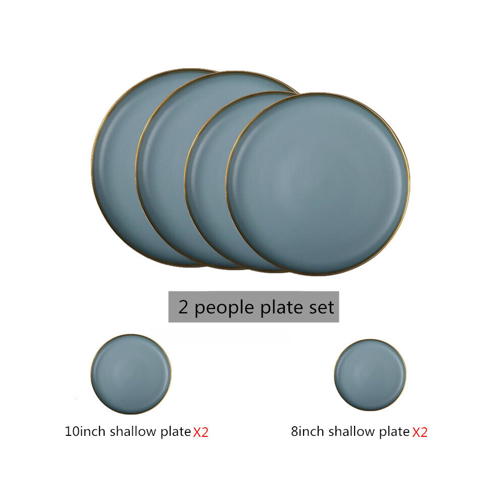 (a-2 people plate set) Matte Gilt Rim Ceramic Tableware Set with Spoon Cereals Bowl Dessert Plate Steak Plate for Dinner Gift Plates and Bowls Set