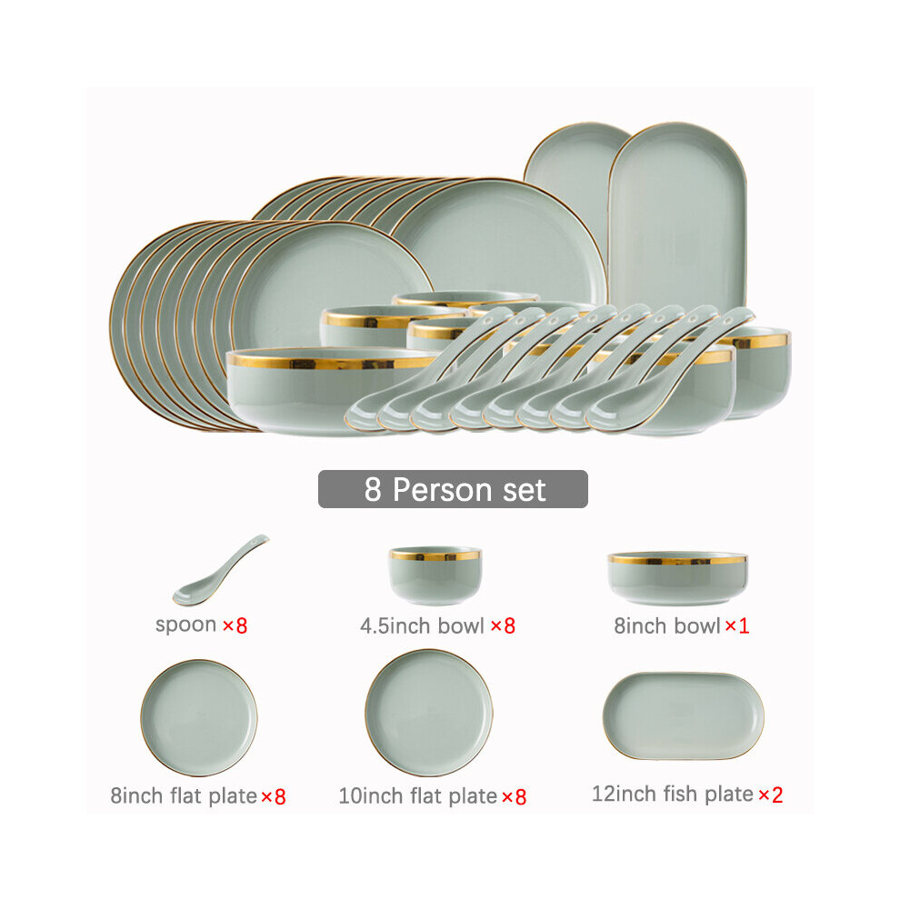 (a-8 person set) Ceramic Tableware Set Dishes Dinner Plates Steak Food Dessert Plate Green Salad Soup Bowl Plates and Bowls Set for Family Hotel