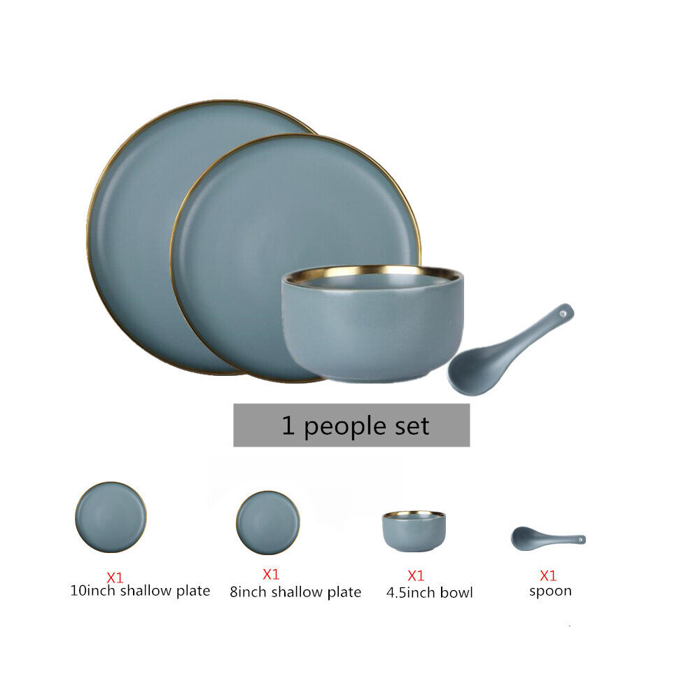 (a-1 people set) Matte Gilt Rim Ceramic Tableware Set with Spoon Cereals Bowl Dessert Plate Steak Plate for Dinner Gift Plates and Bowls Set