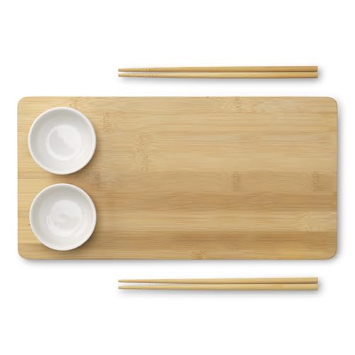 eBuyGB Sushi Plate Set with Bamboo Sushi Board, 2 Pairs of Chopsticks and 2 Ceramic Dip Bowls, Japanese Tableware, Set for 2 Dinnerware