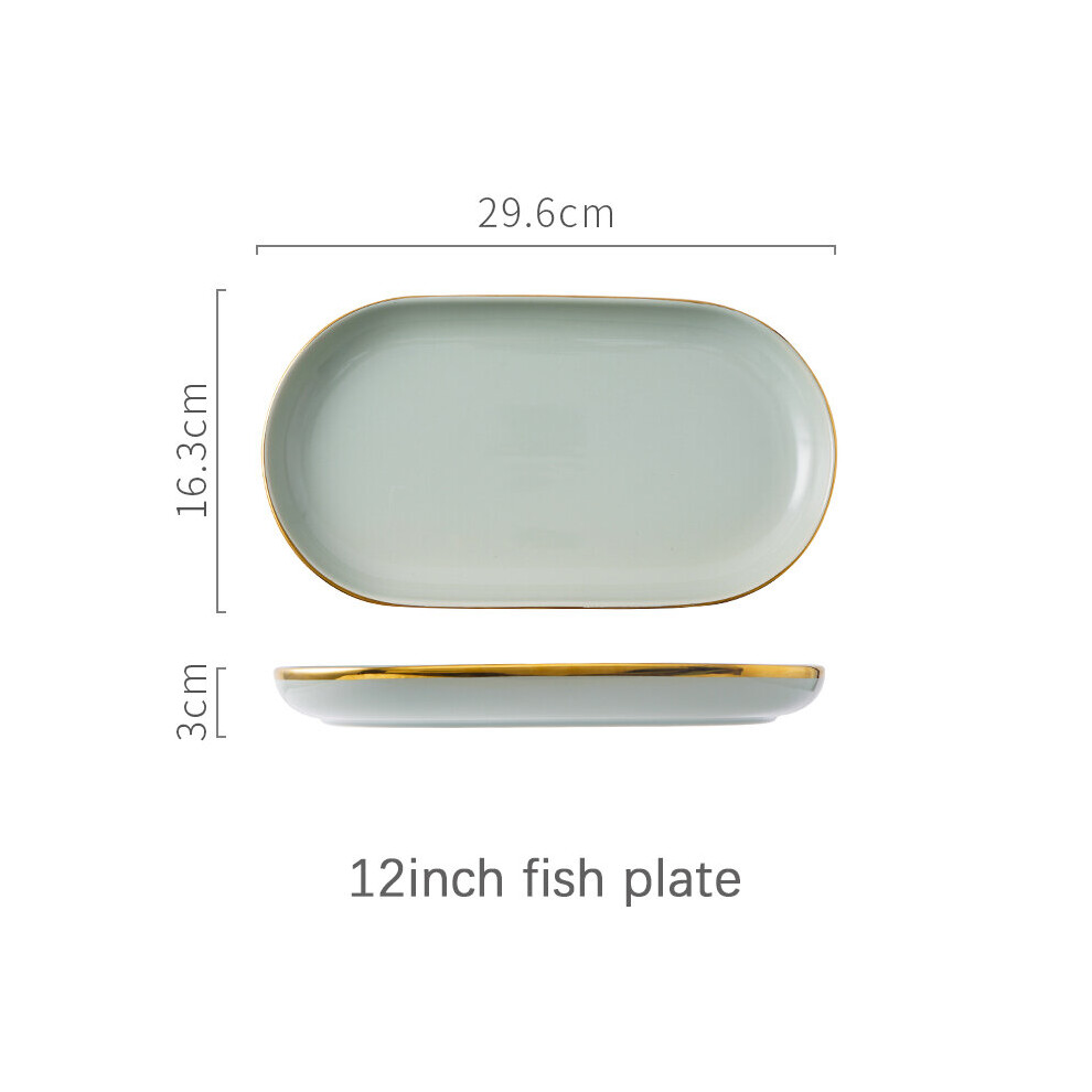 (a-12inch fish plate) Ceramic Tableware Set Dishes Dinner Plates Steak Food Dessert Plate Green Salad Soup Bowl Plates and Bowls Set for Family Hotel