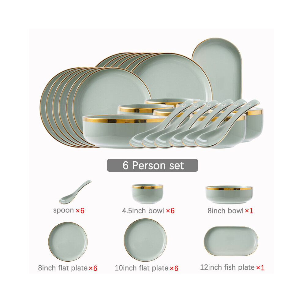 (a-6 person set) Ceramic Tableware Set Dishes Dinner Plates Steak Food Dessert Plate Green Salad Soup Bowl Plates and Bowls Set for Family Hotel