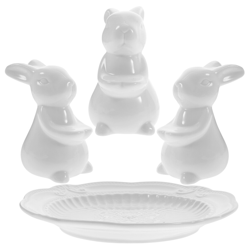 One Set Ceramic Easter Bunny Cake Plate And Tray Cupcake Stand