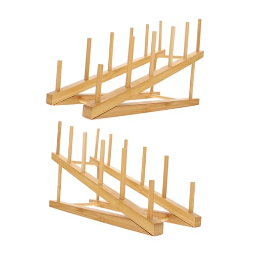 Toyvian 2pcs Wooden Plate Stands for Display Shelf Desktop Dish Racks Holders for Book Artwork Kitchen Organizer Rack Serving Tray Display Holder
