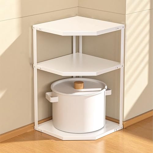 Jwthee Cabinet Organizer Shelf, Corner Shelf for Kitchen Counter, Space Saving Corner Cabinet Organizer Stable Carbon Steel Cookware Stand for Plates, Dishes, Bowls, Pot (3 Layer White)