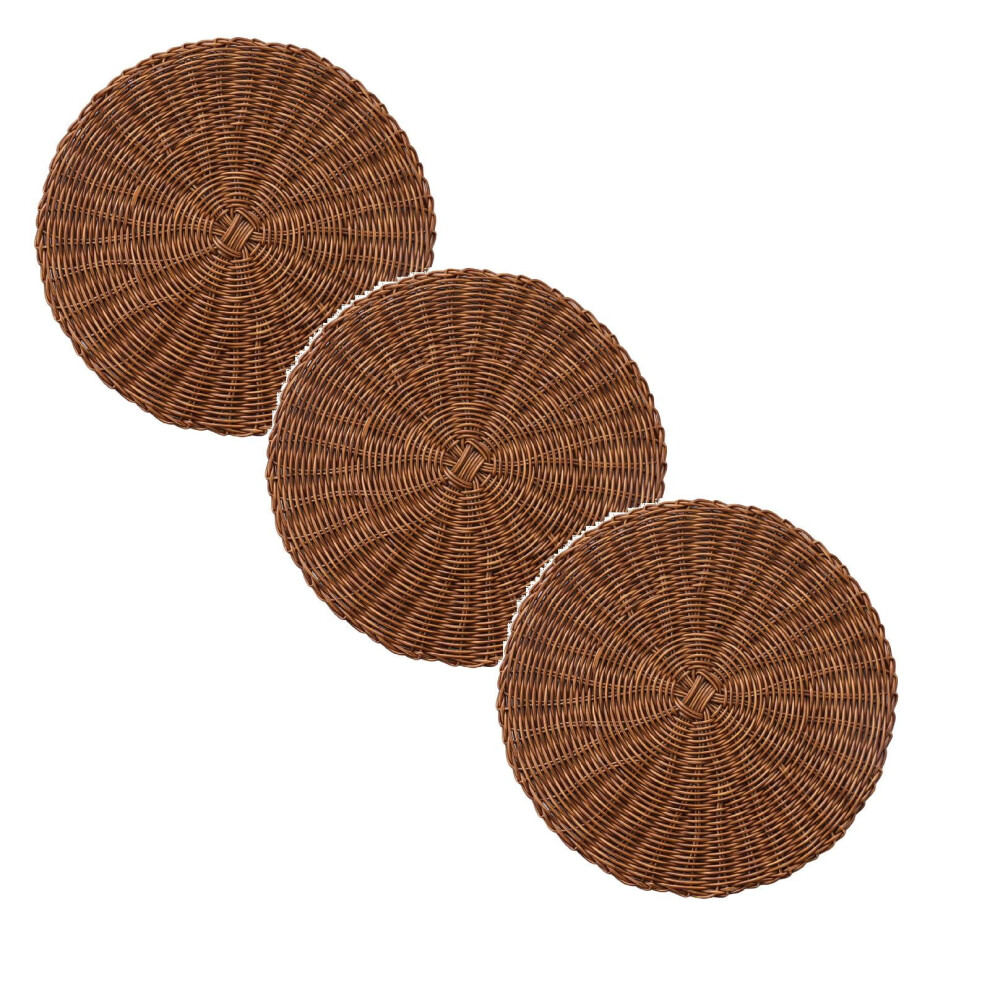 Set of 3 Handwoven Rattan Table Placemats - Round Wicker Heat Protector Mats for Plates, Cups, Bowls with Non-Slip Bottom, Boho Style Decor