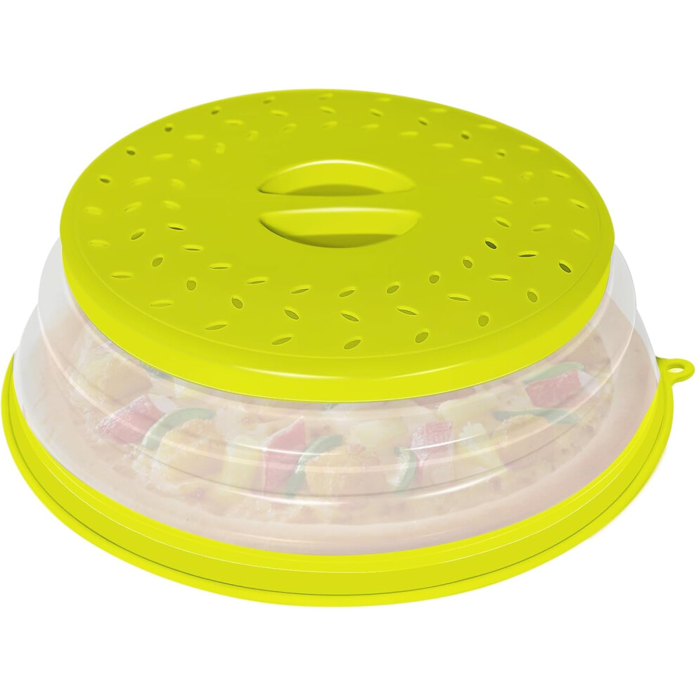 Collapsible Microwave Splatter Cover with Vent, Hook Hole & Colander Function - Compatible with Plates, Dishes, Bowls (Green)