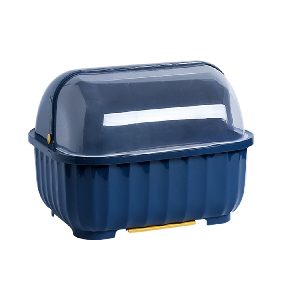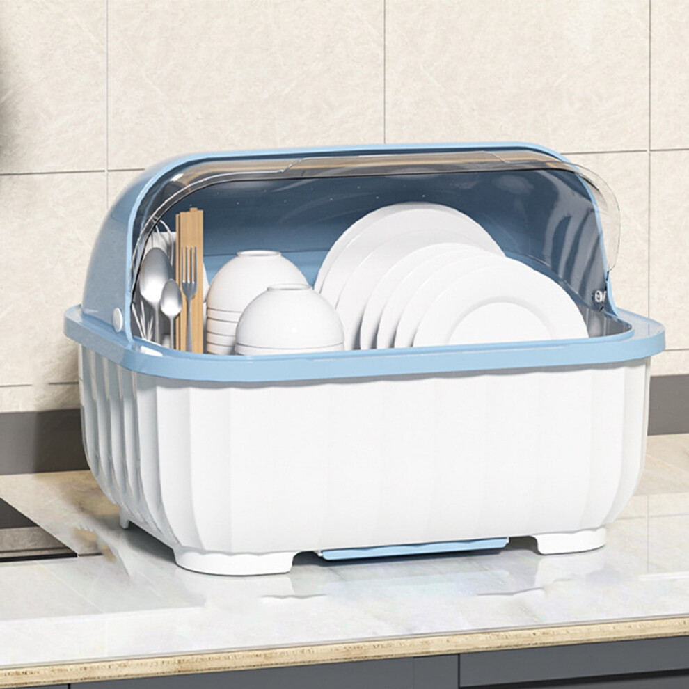 PAVEOS Kitchen Dishware Organizer, Rack for Plates & Bowls with Drainage, Utensil Storage Box with Lid, Space-saving Cabinet Organizer - Light Blue