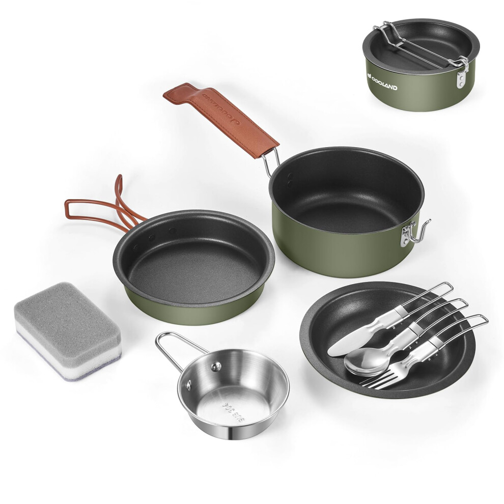 Odoland 10 pcs Camping Cookware Set, Non-Stick Lightweight Cooking Set with Plates Bowls Forks Knives and Spoons - Perfect for Backpacking, Camping,