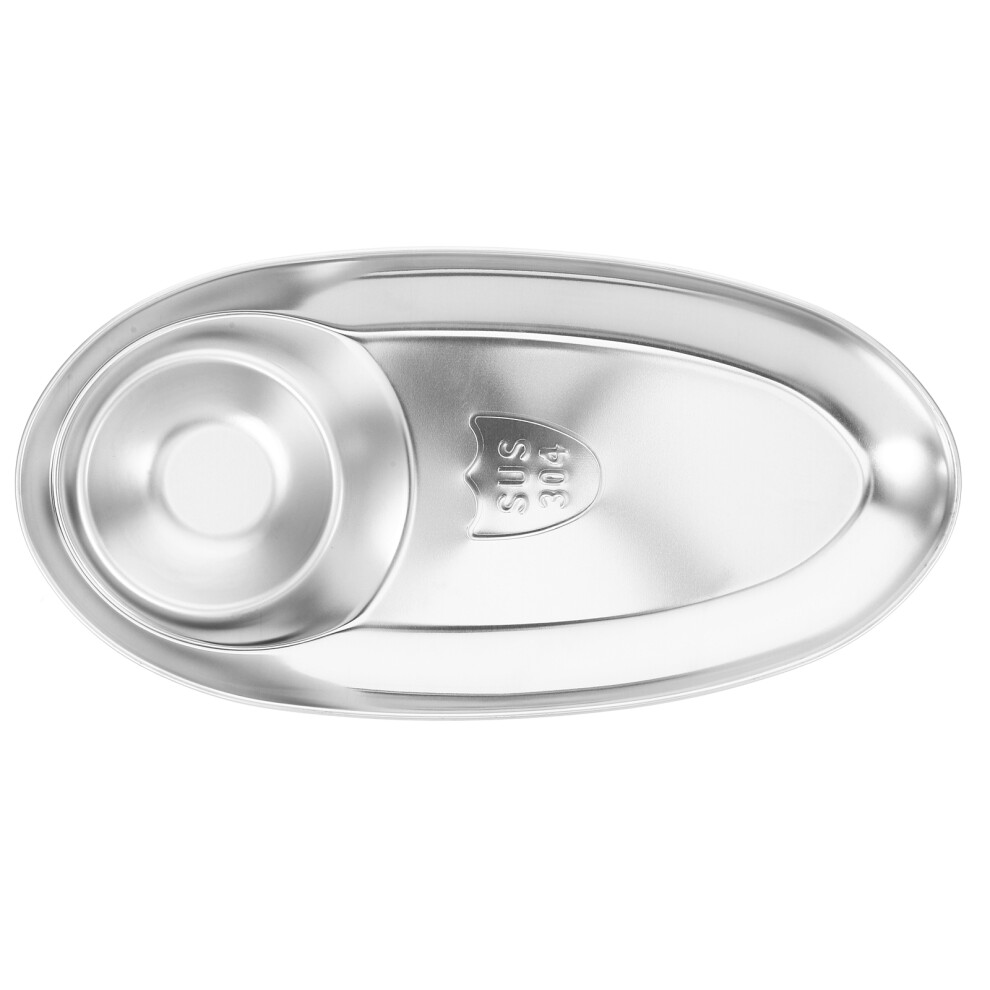 4Pcs Oval Stainless Steel Snack Plates with Dip Bowls Silver