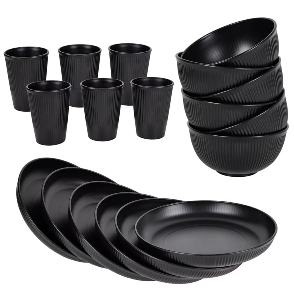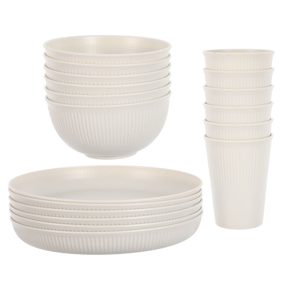 18Pcs Dinnerware Set With Plates Bowls Cups Reusable For Camping