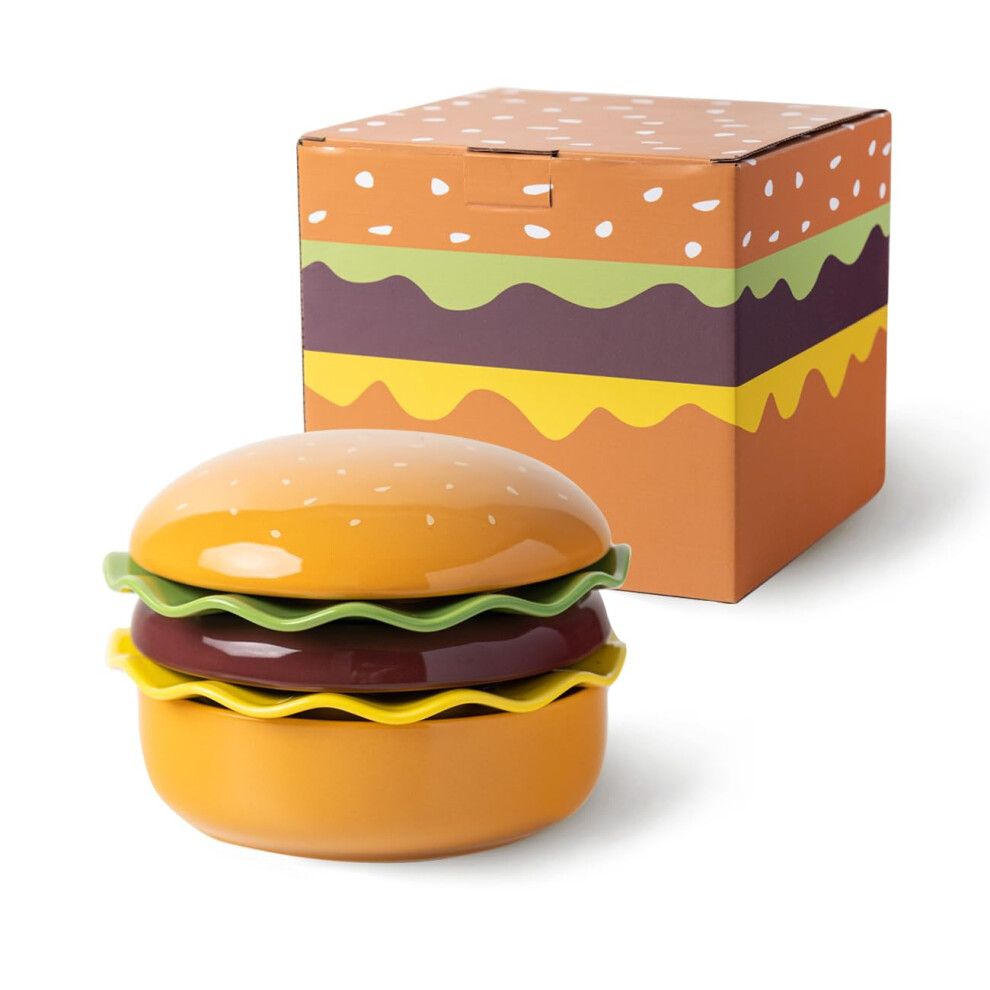 5 Pieces Cute Hamburg Style Dinnerware Sets for Dinner Dessert Plates & Cereal Bowls with Lid Sets Novel Tableware Gift