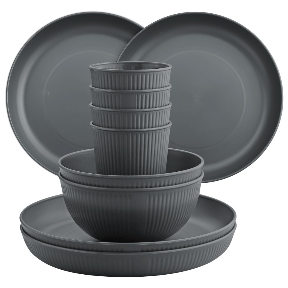 12pc Outdoor Dining Set with 4x Dinner Plates, 4x Side Plates and 4x Bowls, Multicolour