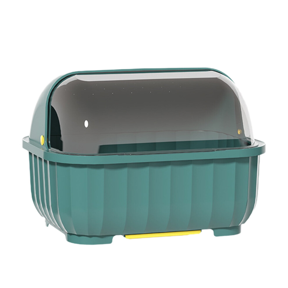 QuLuJing Fall Savings, Adjustable Kitchen Dishware Organizer for Plates & Bowls with Drainage, Utensil Storage Box with Lid, Space-Saving Cabinet
