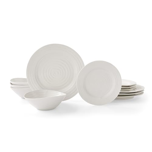 Portmeirion x Sophie Conran Porcelain Dinner Set for 4 – 12 Piece White Tableware with Plates, Bowls & Side Plates, Dinnerware for Everyday Meals and Special Occasions