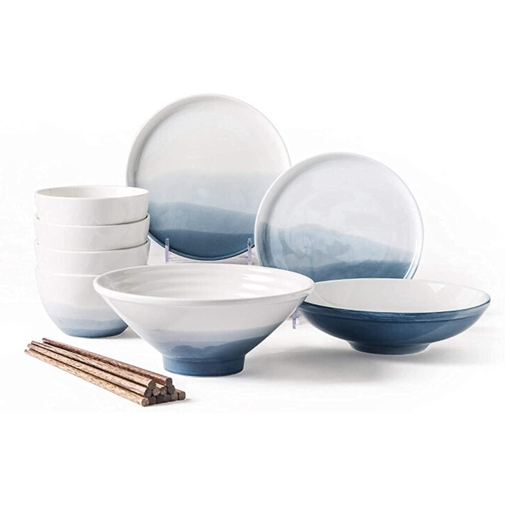 Ceramic Dinnerware Set Dark Blue Snack Plates and Bowls with Tray Microwave Dishwasher Safe
