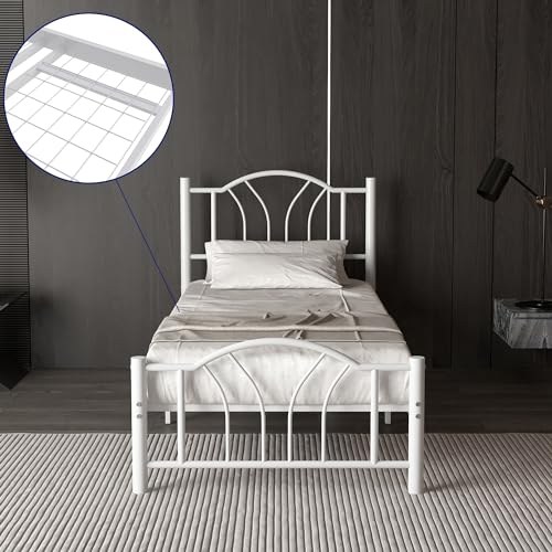 Diahomy Single Bed Frames 3ft Metal Platform Bed Frame with Headboard and Footboard/Heavy Duty/Mattress Foundation/Under Bed Storage/For Adults,Kids, Teenagers/White