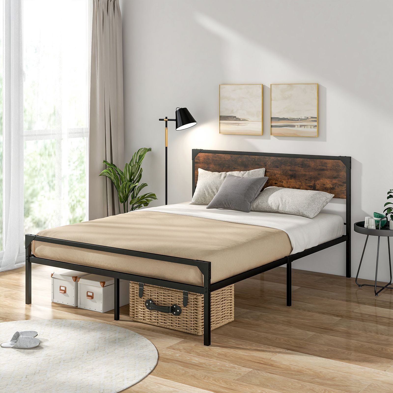 Rustic King Bed Frame Industrial Metal Platform Bed Headboard Footboard Unit