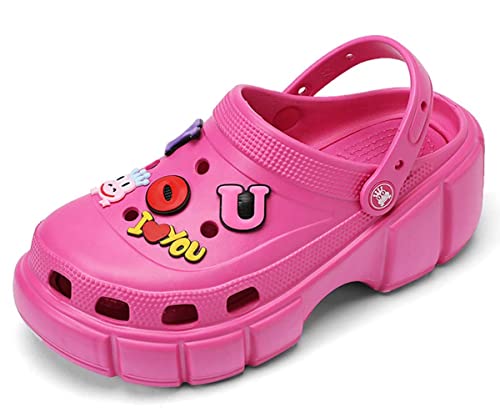 Womens Platform Clogs Slip On Slides for Women's 2 in High Heels Mules Clog Wedge Sandals Beach Slippers Waterproof Gardener Platform Clogs Shoes with Clogs Charms Pink 40