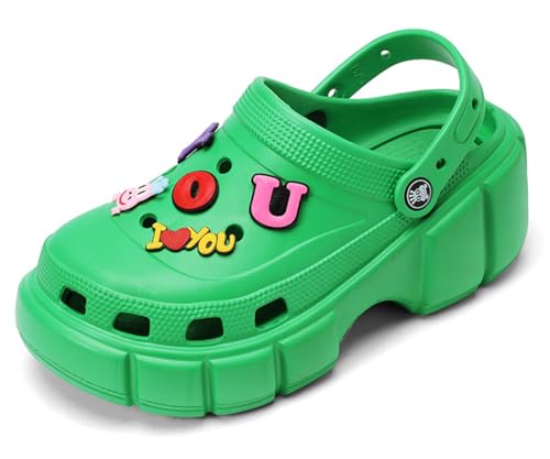 Sunporx Platform Clogs for Women High Thick Soled Classic Soft Comfortable Breathable Slip on Garden Beach Indoor Outdoor Slippers Sandals Green