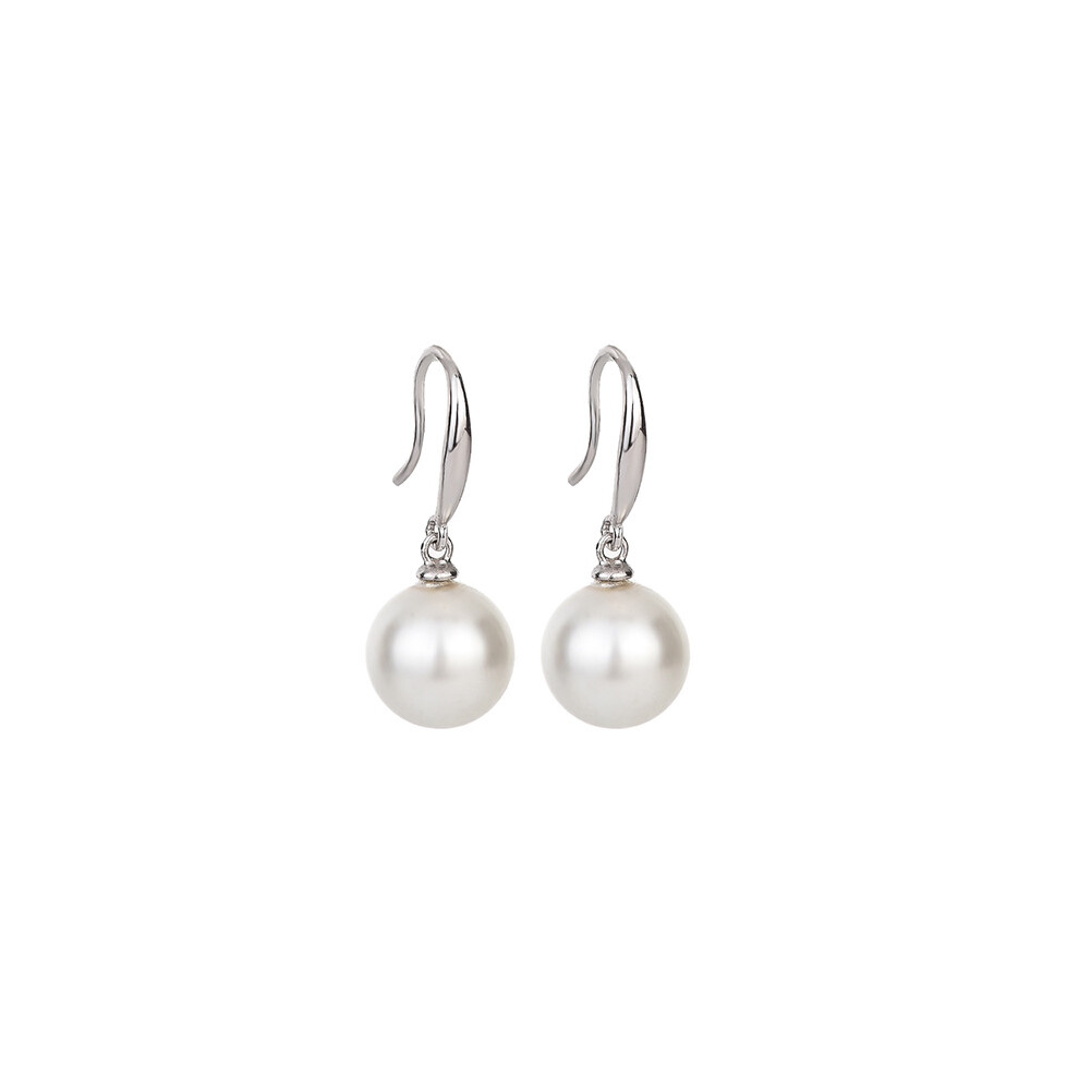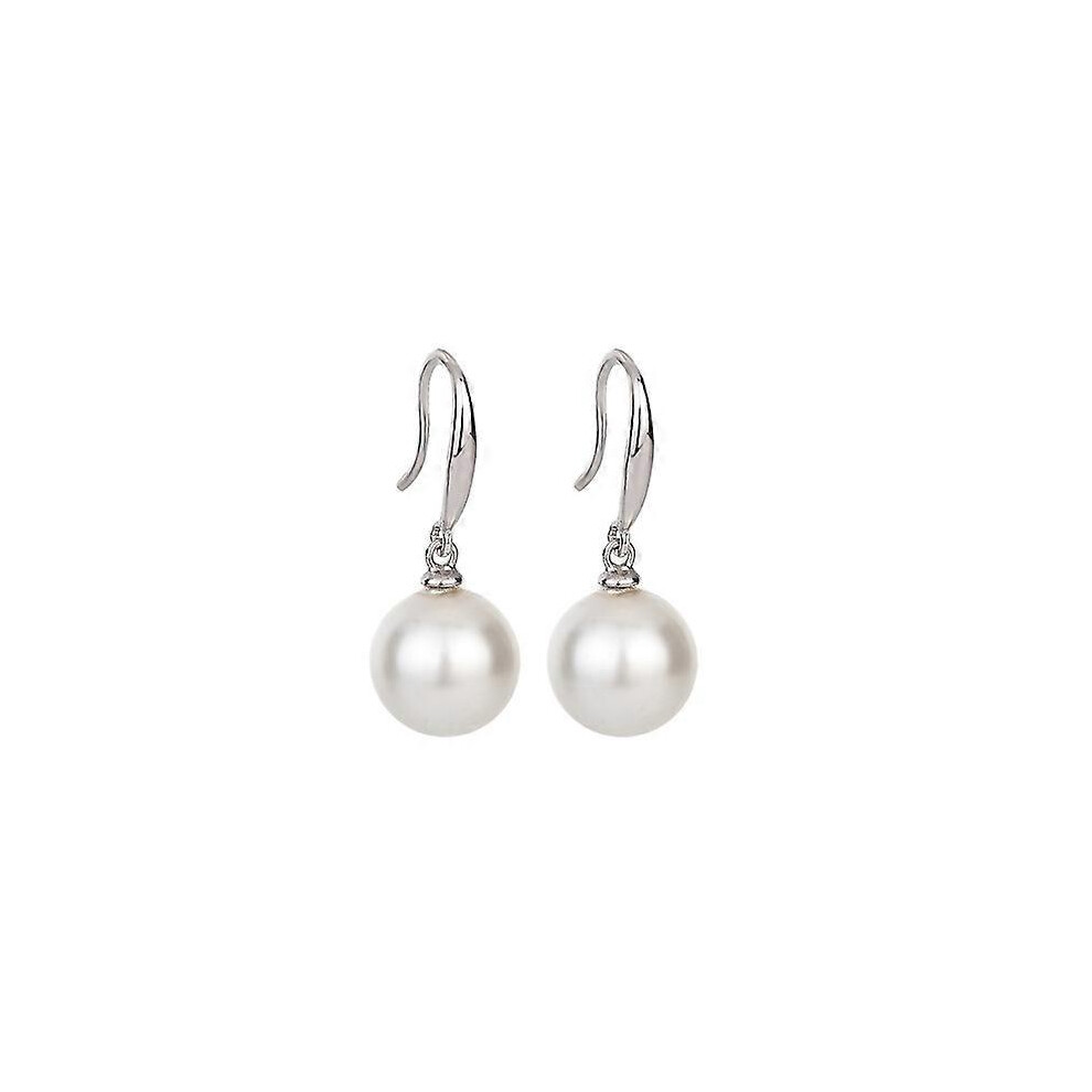 (As show, One size) Sterling silver white pearl pendant earrings (platinum), simple and classic earrings