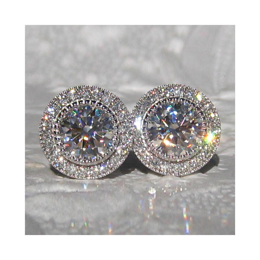 AAAAA Sparkling Diamond White Crystal Stud Earrings – Platinum-Plated Sterling Silver, Elegant Jewellery for Special Occasions