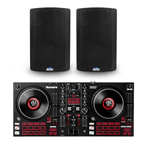 Numark Mixtrack Platinum FX DJ Controller and ALTO TX412 Powered PA Speakers Pair for Live Music, DJ sets, Events, Music production