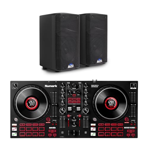 Numark Mixtrack Platinum FX DJ Controller and ALTO TX408 Powered PA Speakers Pair for Live Music, DJ sets, Events, Music production