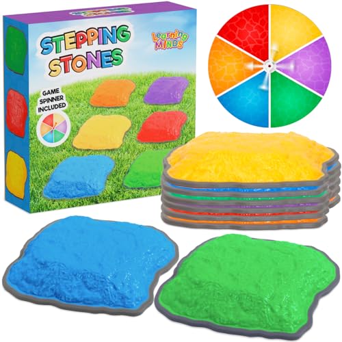 Learning Minds Stepping Stones for Kids – 6 Large, Strong, Non-Slip Balance Stones - Indoor & Outdoor Play Equipment - Outside Toys For Kids of All Ages