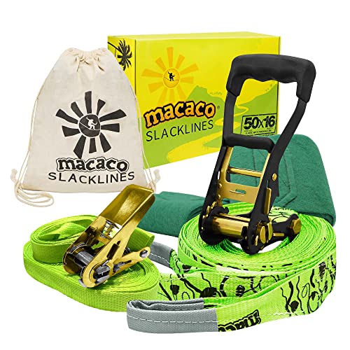 Macaco Slackline Kit 16m with Training Line | Slack Line Outdoor for Kids | Forest School Equipment | Circus Skills Equipment for Kids | Outside Toys for Kids Outdoor Play Equipment