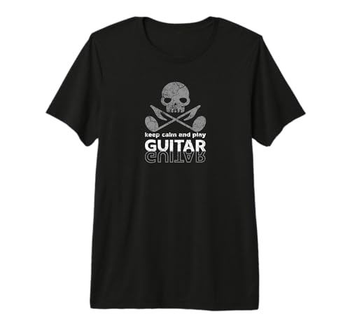 Guitar Player Skull with Notes Keep Calm Play Guitar Premium T-Shirt
