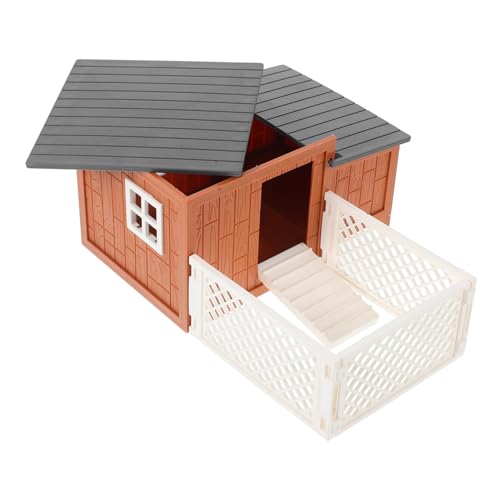 Toyvian Realistic Miniature Chicken Coop and Fence Playset for School Projects and Dollhouse Accessories, Plastic Farm Hen House Model Toy for Pretend Play and Garden Decoration
