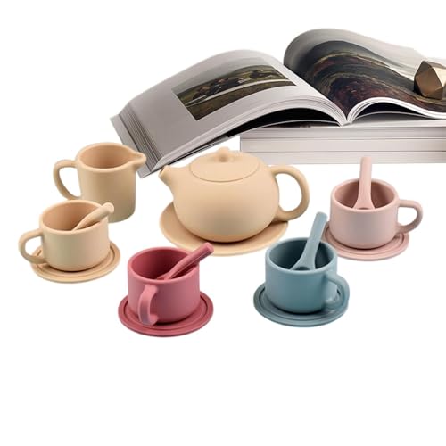Toy Kitchen Utensils – Silicone Tea Party Set With Teapot Cups Plates | Kids Role Play Kitchens Accessories – Children Tea Set For Boys Girls Age 3+, Soft Safe Material, 19cm Pretend Playing Food Tabl