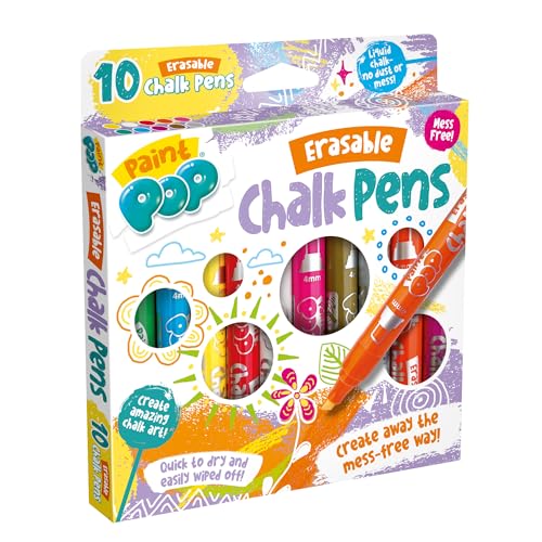 Paint Pop - Erasable Chalk Pens For Kids - 10 Assorted Smooth Liquid Colours - For Fun Outdoor Play & Creative Chalk Projects - Use on Non-Porous Surfaces, Dust & Mess Free, Quick Drying - 3+ Years