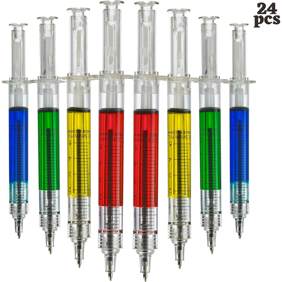 SunAngel Multi-Color Syringe Pen Writes In Black Ink Nurse pens Imaginary Doctor Play Office Supplies (red green yellow blue 24 Pieces)