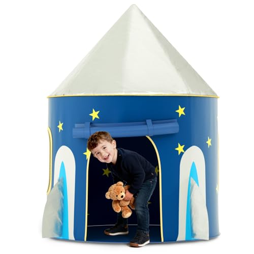 JOYIN Kids Play Tents Indoor Outdoor, Rocket Ship Play Tent, Spaceship Pop up Play Tent for Kids, Toddlers Playhouse Toys, Birthday Gifts for 3 4 5 6 7 8 Year Old Boys & Girls