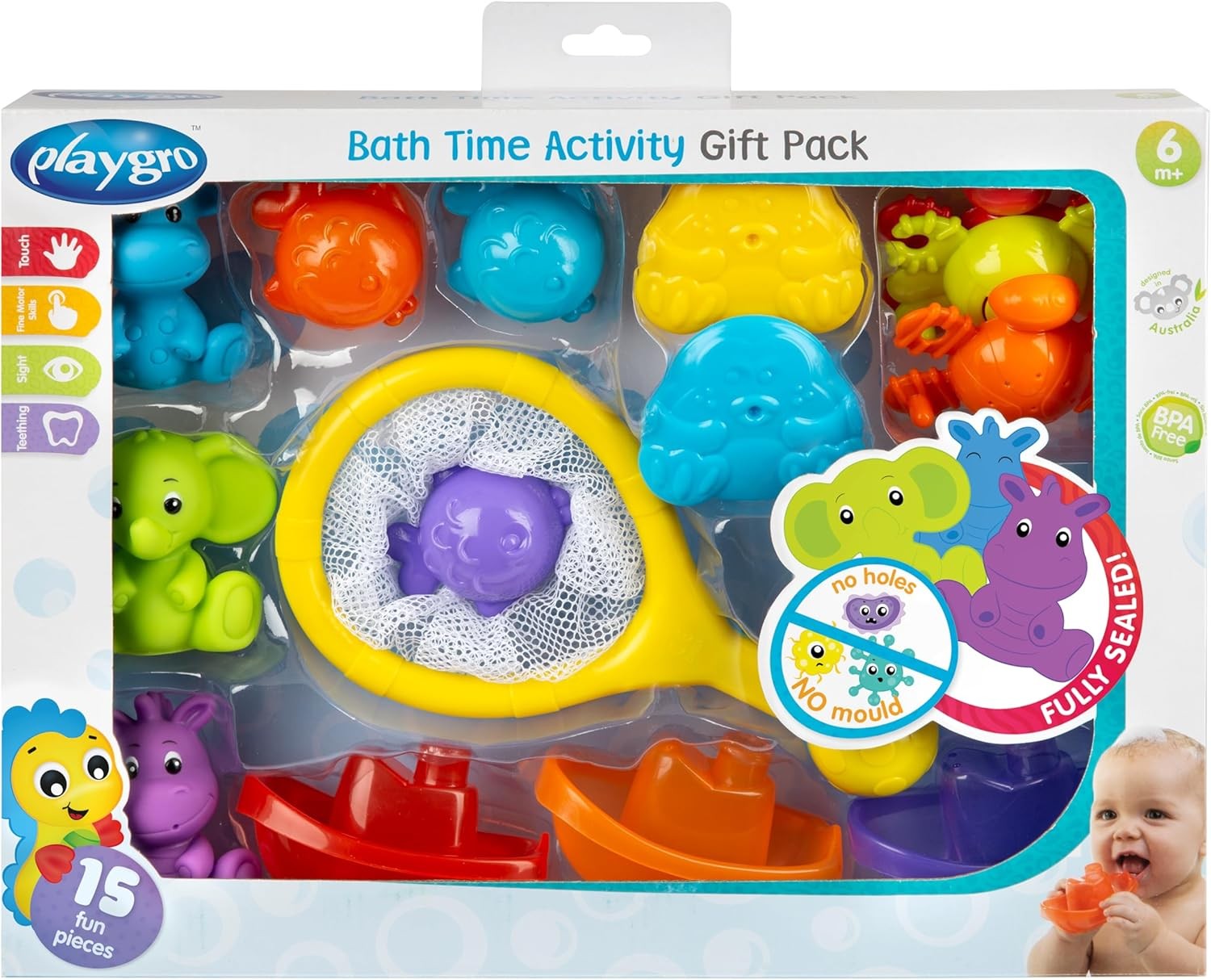 Playgro Bath Time Activity Gift Pack, Bath Toy for Children, Animals, Boats, 15