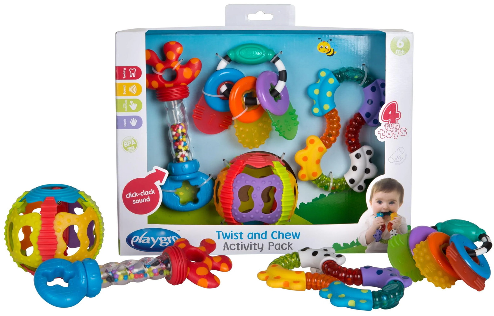 Playgro Gift Set Activity Pack Twist and Chew, 4-piece, From 6 Months, Multicoloured