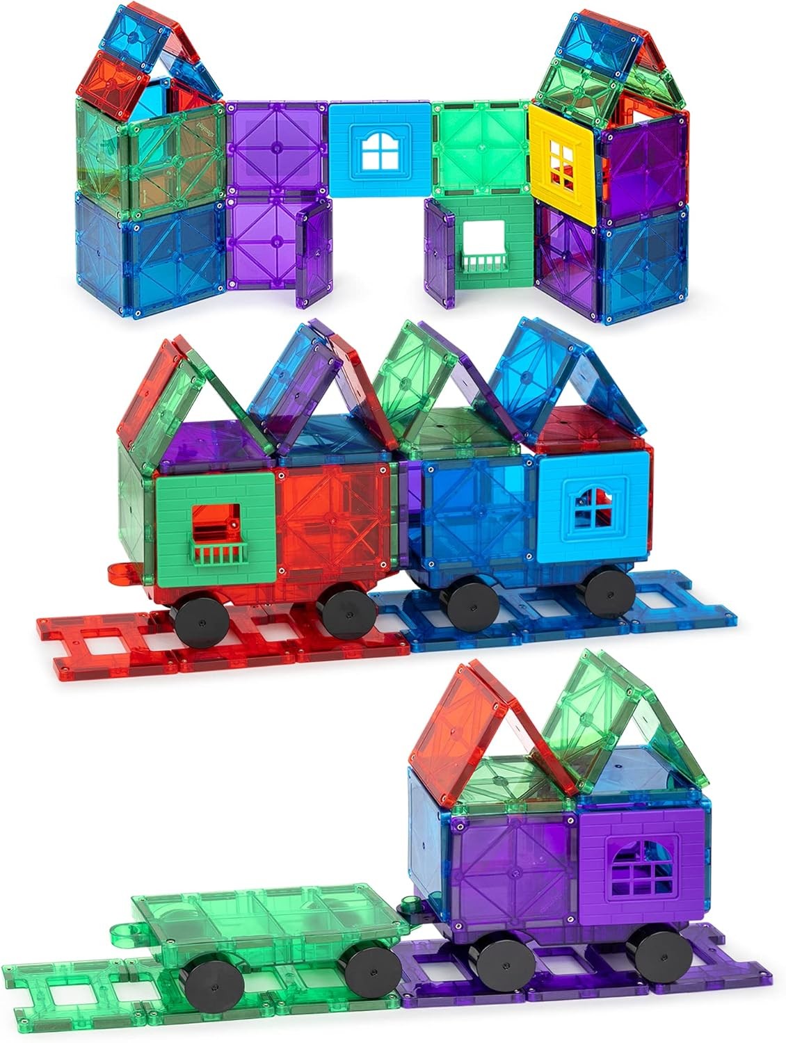Playmags 60 Pcs Set 3D Magnetic Tiles Building Playset - Durable Stronger Magnet Building Tiles- Magnetic Tiles For Kids includes 30 Window Frames and 30 Click-in Windows Set