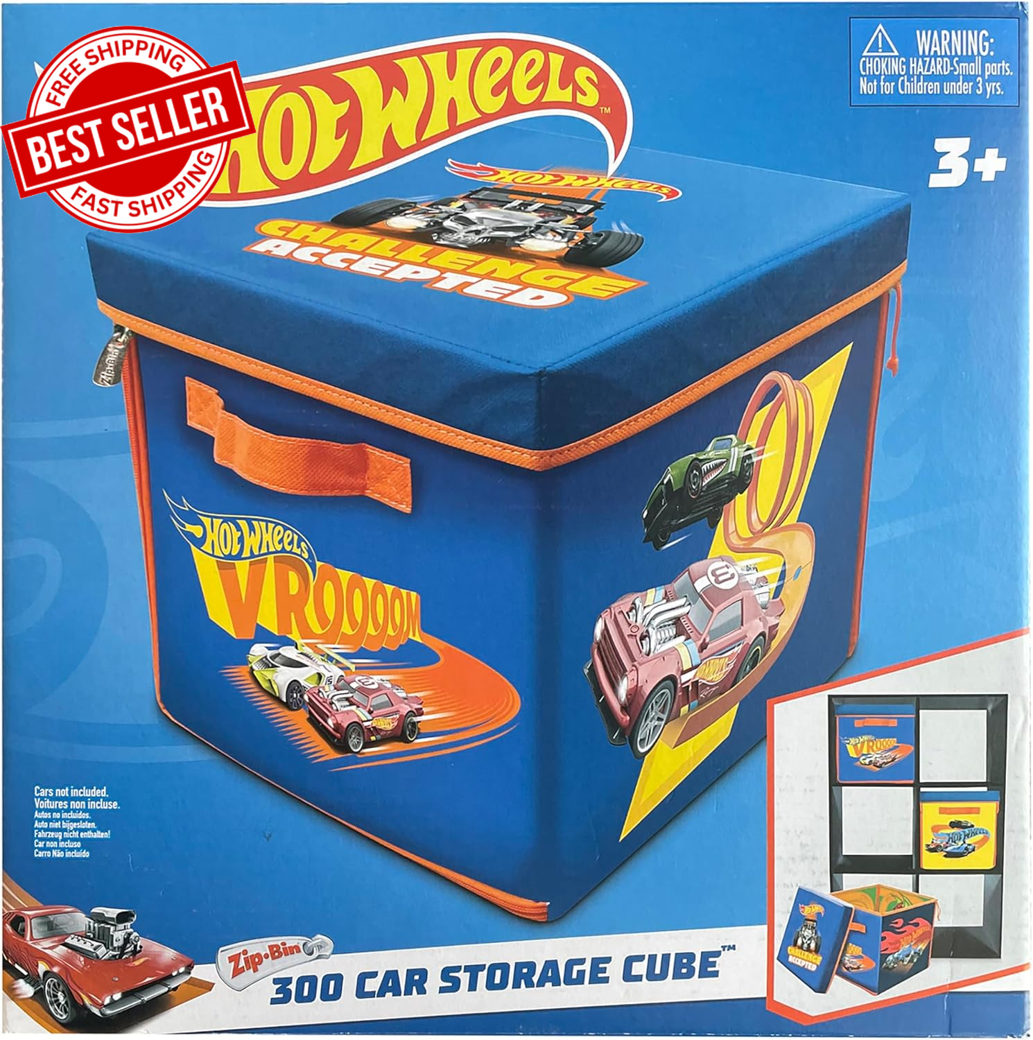 Hot Wheels Tara Toys Ramp It Up ZipBin Storage Box, Holds 300 Toy Cars, Includes Playmat and 2 Fold-out Ramps, Ages 3+
