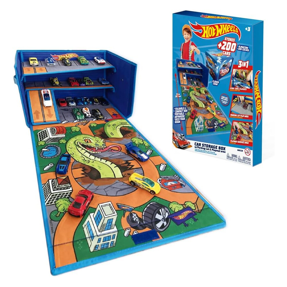 Hot Wheels Cars Storage Box with Parking Lot and Playmat Area