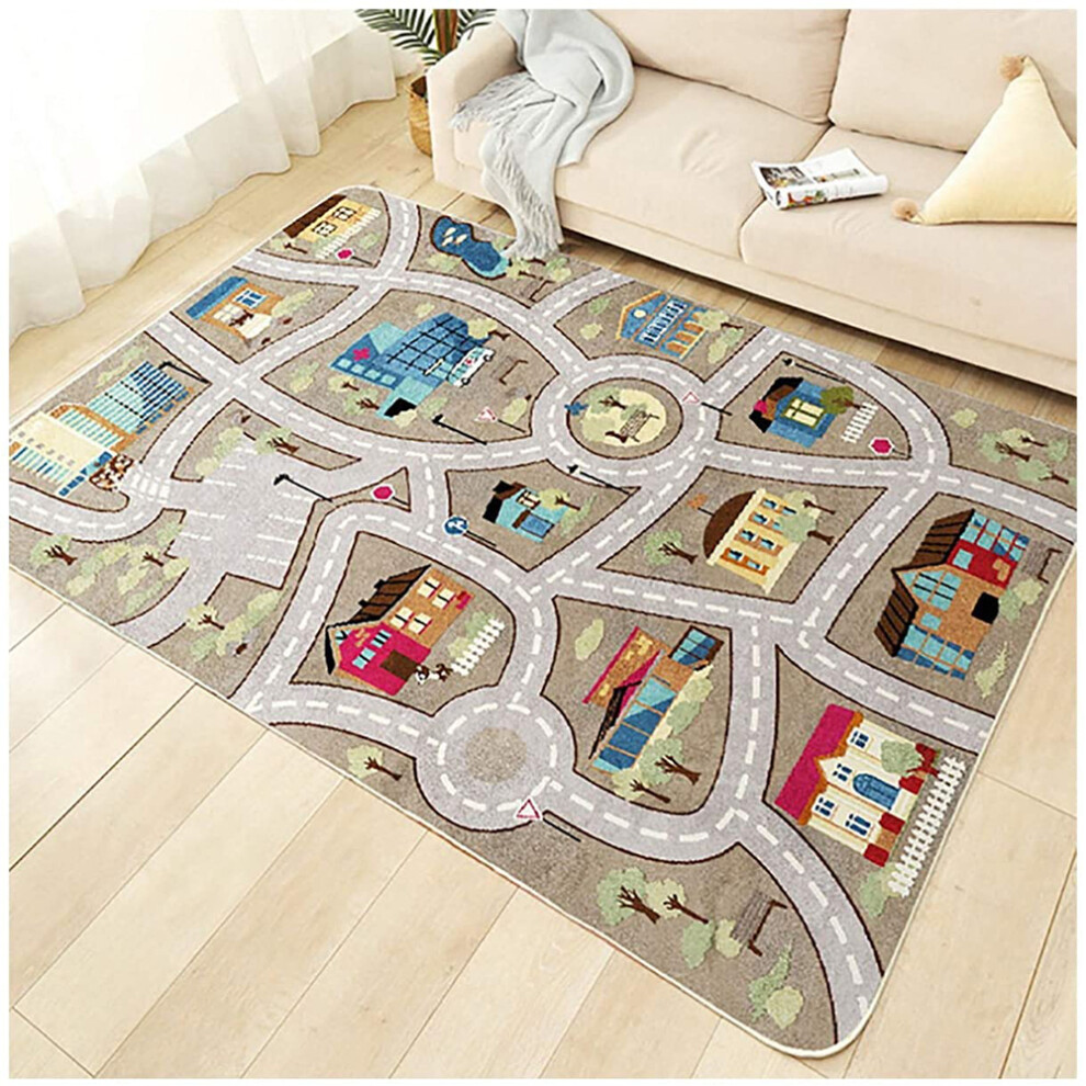 Kid Rug Carpet for Creative Play, Playmat for Toy Cars with Non-slip Plastic Bottom, Fun Throw Rug, Ideal Gift for Children's Room and