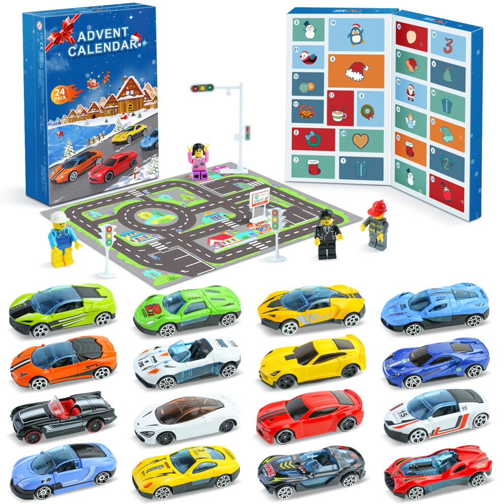 Advent Calendar 2024 Cars 24 Days Christmas Countdown Toys Set 8 Holiday-Themed Cars And Accessories with Playmat Gift & Toys for Kids 3 Y