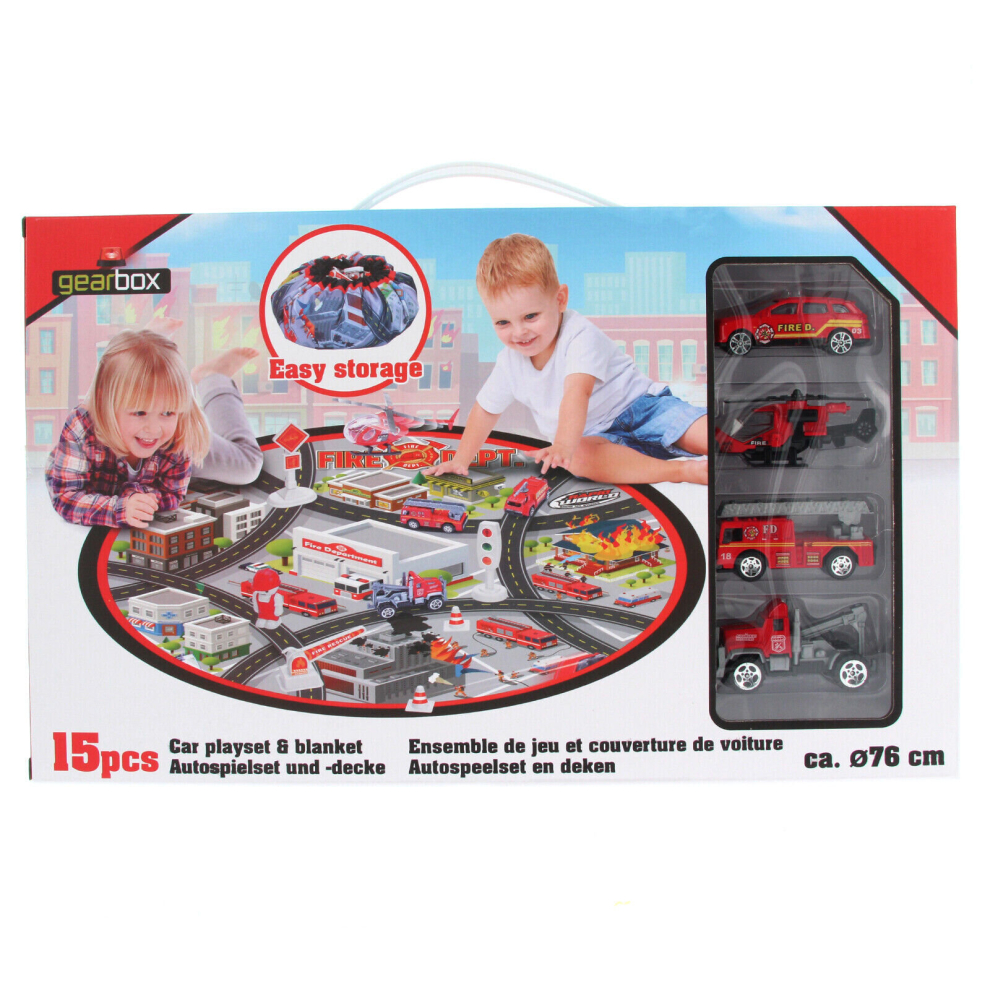 (Red (Fire Dept)) Kids Car Playset Playmat City Toy Road Map Mini Cars Transport Children 15PC