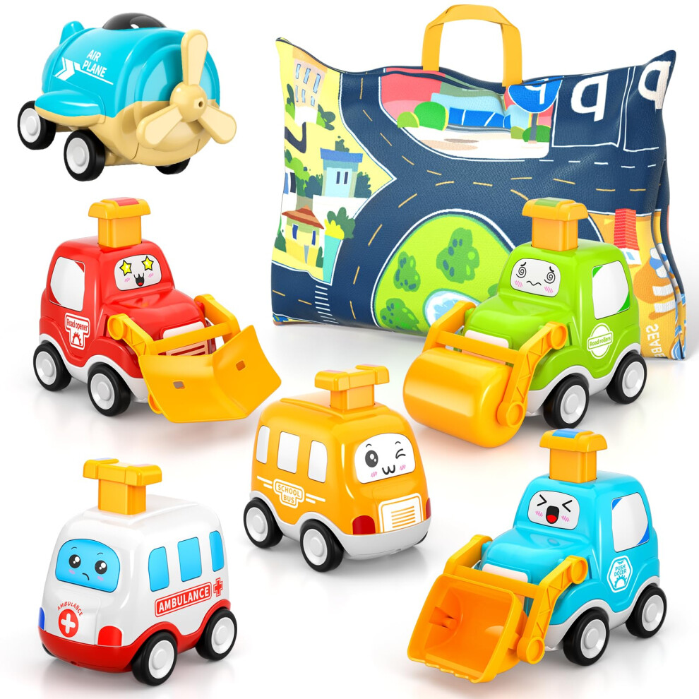 Toddler-Birthday-Gifts Car Toys for 1 Year Old Boys - Toddler Pull Back Toy Cars,with Playmat Storage Toy Cars Gifts for 1 2 3 Year Old Boys Girls Kids Cars Toys