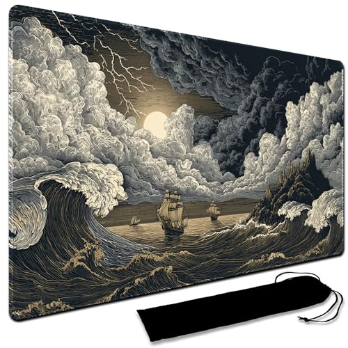 MTG Playmat, 60 x 35CM MTG Playmat with Zones, Stitched Edges Game Play Mat Trading Card Game Playmats Mouse Pad Smooth Rubber Surface TCG Game Mat with Storage Bag (No Zone,9)