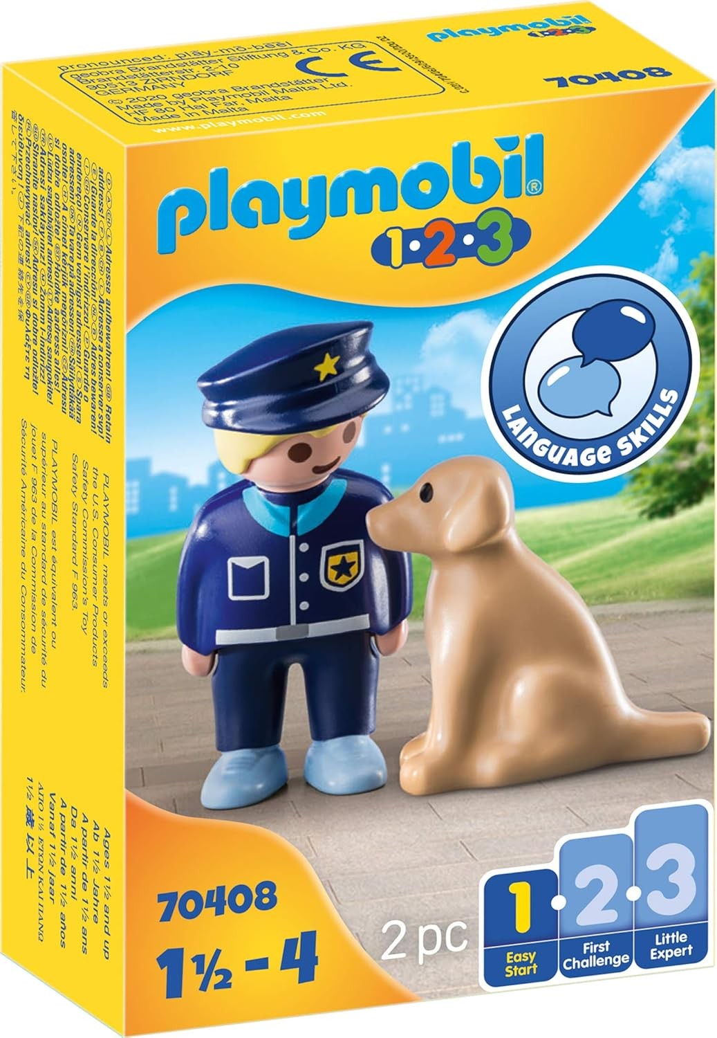 Playmobil 1.2.3 70408 Police Officer with Dog, for Children Ages 1.5 - 4